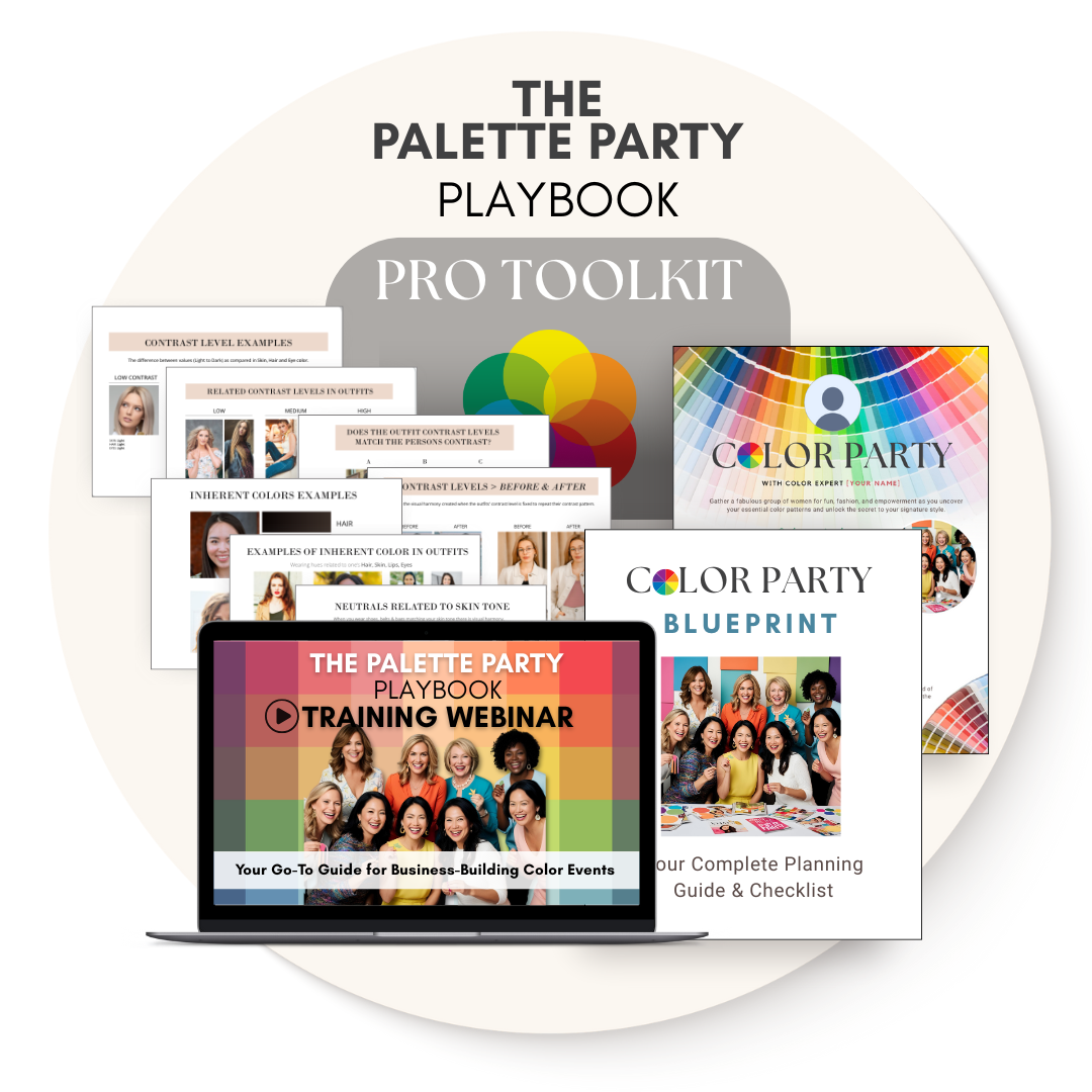 Learn how to host successful Color Palette Parties! Get lifetime access to the training webinar, plus the toolkit with printable visual handouts, an elegant pre-designed Canva Promo Flyer, and the Color Party Blueprint—a complete event guide to ensure your party runs smoothly and successfully. All the tools you need to turn Color Palette Parties into a powerful business-builder!